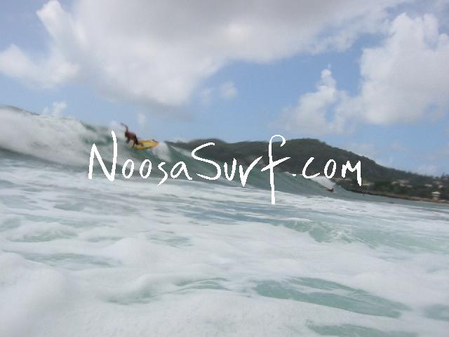 Noosa Main Beach, between the two groynes. <a href="http://www.noosamailibuclub.com" target="_blank">Noosa Malibu Club</a> holding a competition event with a few short boarders grabbing a few waves also